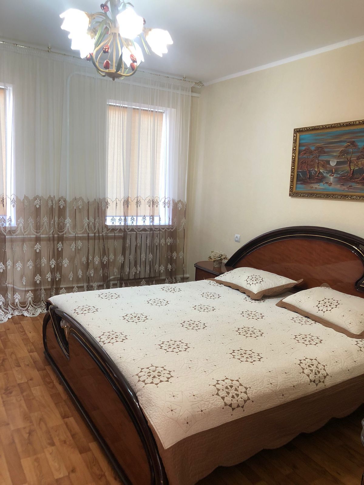 Удобная двуспальная кровать с ортопедическим матрасом
